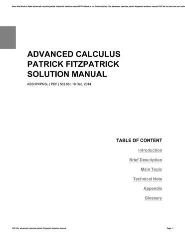Reading Online ADVANCED CALCULUS FITZPATRICK SOLUTIONS MANUAL Nook Internet Archive